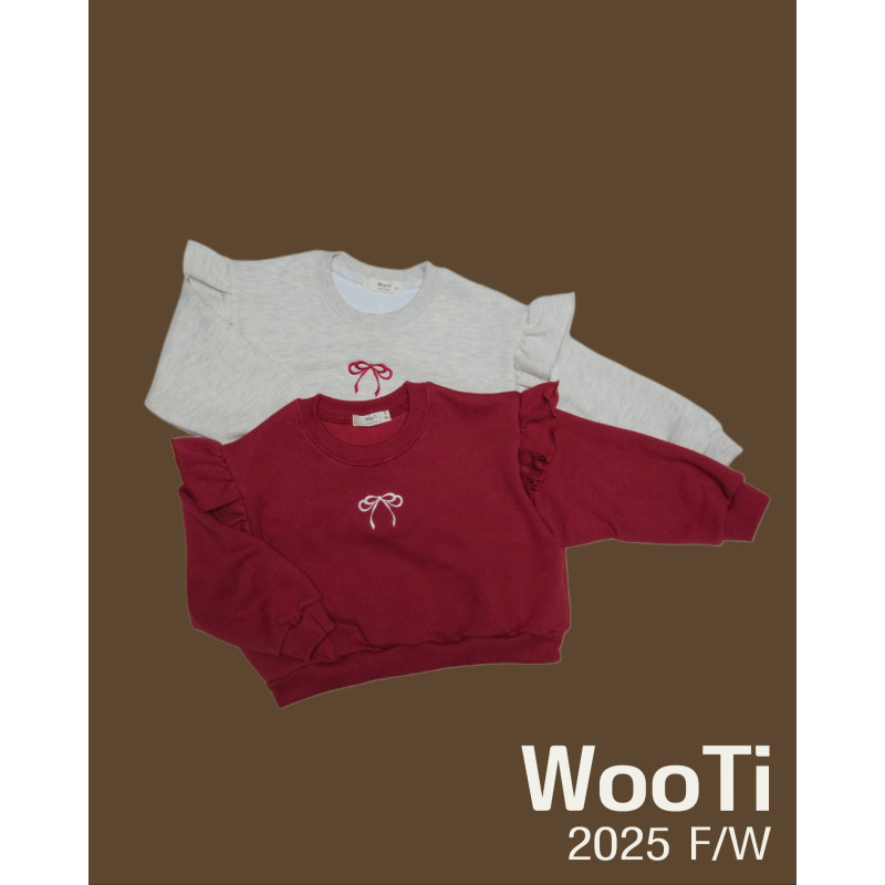 어깨 프릴 디테일과 리본 자수가 포인트인 맨투맨이에요.