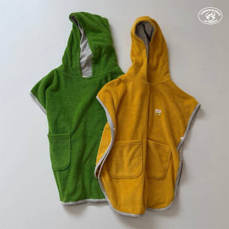 물놀이 끝나고, 그냥 툭 걸쳐주면 끝나는 후드 타올이에요.